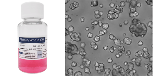 Wnt signaling is known to be involved in early development, maintenance and regeneration of stem cells, and in cancer formation. Wnt signaling has also been found to play an important role in the growth and maintenance of these processes. In particular, Wnt3a has been revealed to be an essential niche component for maintaining the proliferation of Lgr5-positive stem cells in intestinal epithelial cells and is used for the production of various digestive organoids such as the small intestine, large intestine, stomach, pancreas and liver. Although Wnt3a has been conventionally used for the culture of gut organoids, it is a fat-soluble protein, so it forms aggregates in serum-free medium and can not exert its activity sufficiently. In 2016, Mihara et al. found that high Wnt3a activity can be maintained by forming a complex with Wnt3a by Afamin, which is one of the components of serum. In addition, by using Afamin and Wnt3a complex for organoid culture, long-term culture of organoid becomes possible. This new medium will result in optimal success for your organoid experiments.