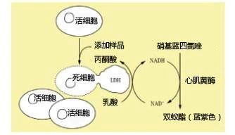 可以直接测定细胞膜受到试剂影响而死亡的细胞中的游离LDH(乳酸脱氢酶),灵敏性高。