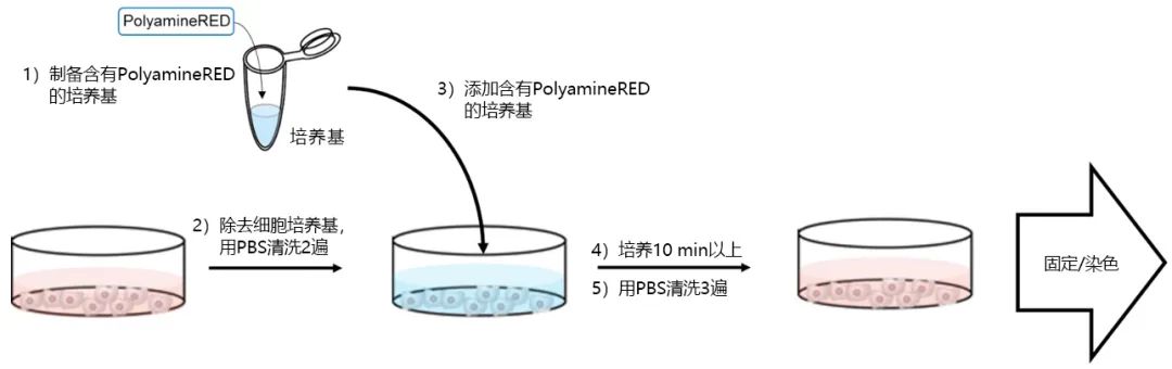 1. 添加终浓度10~30 μM的PolyamineRED至新制备的培养基中;