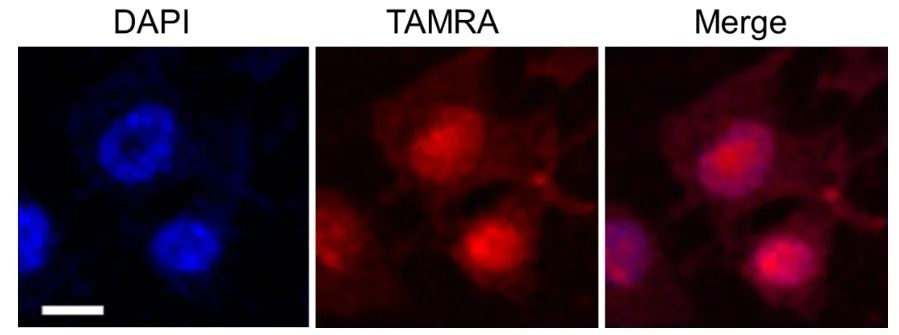 ● 可通过清洗去除未反应试剂,而多胺-TAMRA复合物因多胺的聚阳离子性保留在细胞内