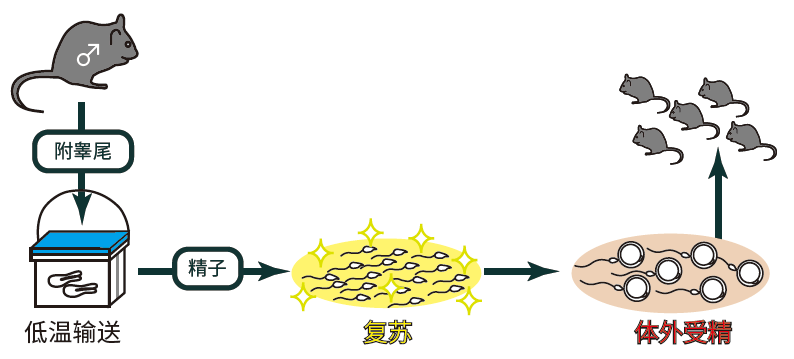 不需要雄性活鼠,只需要雄性小鼠的附睾尾就能轻易地繁殖幼鼠。使用CARD冷藏运输试剂盒运送小鼠的附睾尾,从附睾尾中取出的精子,在FERTIUP® 小鼠精子预孵培养液中预孵,然后把预孵后的精子加入到CARD MEDIUM® 里进行体外受精,最后移植所得的胚胎至代育小鼠体内。