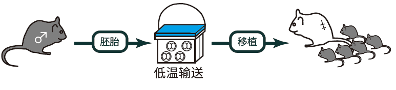 通过使用CARD冷藏运输试剂盒运送小鼠胚胎,再把胚胎移植到代育小鼠的体内,就能简单地繁殖幼鼠。