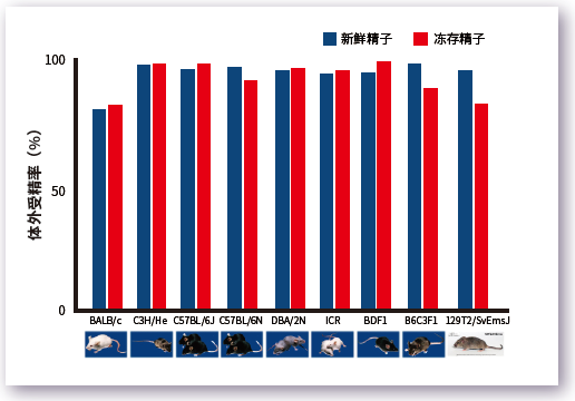 不同品系小鼠的新鲜和冻存精子,在使用了