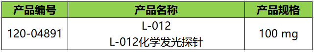 L-012 是一种高灵敏度的化学发光(CHL)探针,比鲁米诺(Luminol)试剂更有效。L-012 与多种类型的活性氧反应,这些活性氧来自人血液和口腔中激活的中性粒细胞或者大鼠腹膜腔。该产品可以用于有辣根过氧化物酶的ELISA 试剂盒,可提高反应灵敏度。