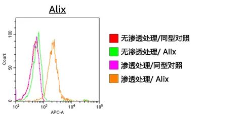 【结果】通过渗透处理,使用流式试剂盒可检测外泌体内部的Alix。