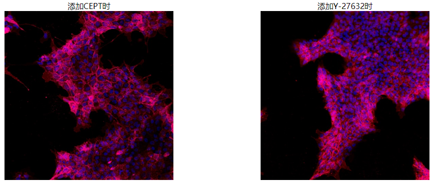 添加CEPT时与添加Y-27632时都未观察到细胞形态的差异,均可确认未分化维持状态。