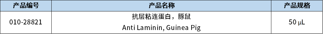 层粘连蛋白是组成细胞外基质(ECM)的糖蛋白,参与细胞粘附、迁移和增殖等。此外,层粘连蛋白和Ⅳ型胶原蛋白等被认为是基底膜(Basement membrane)的主要组成成分。FUJIFILM Wako可提供多重染色用的豚鼠抗层粘连蛋白抗体。