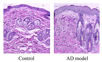 ●Biostir® AD能够在NC/Nga小鼠诱导特应性皮炎样皮肤损伤