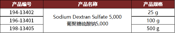 葡聚糖硫酸钠,是一种由葡萄糖聚合,经硫酸化后所得的化合物。本产品的平均分子量约为5000(分子量范围:1000-9000),是聚阴离子物质。在细胞培养中,本品可通过改变细胞表面的电荷,来促使单个细胞悬浮,防止细胞结团,是一种被广泛用于重组蛋白生产的抗结团剂。